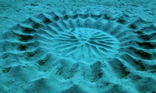 Male Japanese puffer fish create grand sand sculptures – which consist of patterns of circles not too dissimilar to crop circles! – on the featureless seabed to attract females. The males draw these amazing patterns in the sand using their fins, which can take up to a week of intense labour – if that’s not dedication, we don’t know what is!