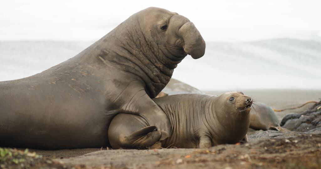 Seals: Some seal species will migrate, such as the elephant seal. This species is typically found either around California (northern elephant seals) or the Antarctic waters (southern elephant seals). They are known to migrate in search of food, sometimes spending months at sea before returning to their rookeries in winter to breed.